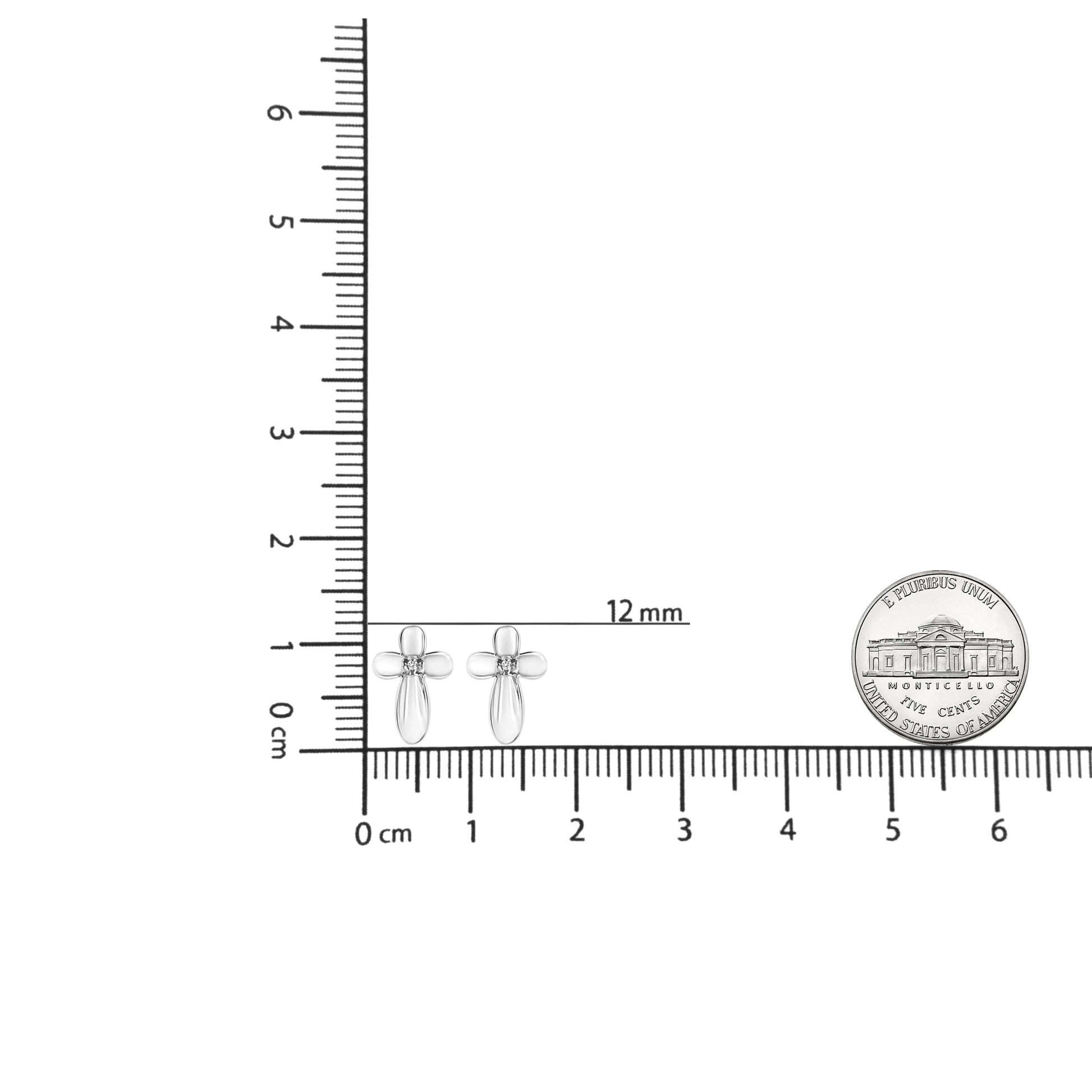 .925 Sterling Silver Prong Set Diamond Accent Floral Cross Stud Earring (I-J Color, I1-I2 Clarity)