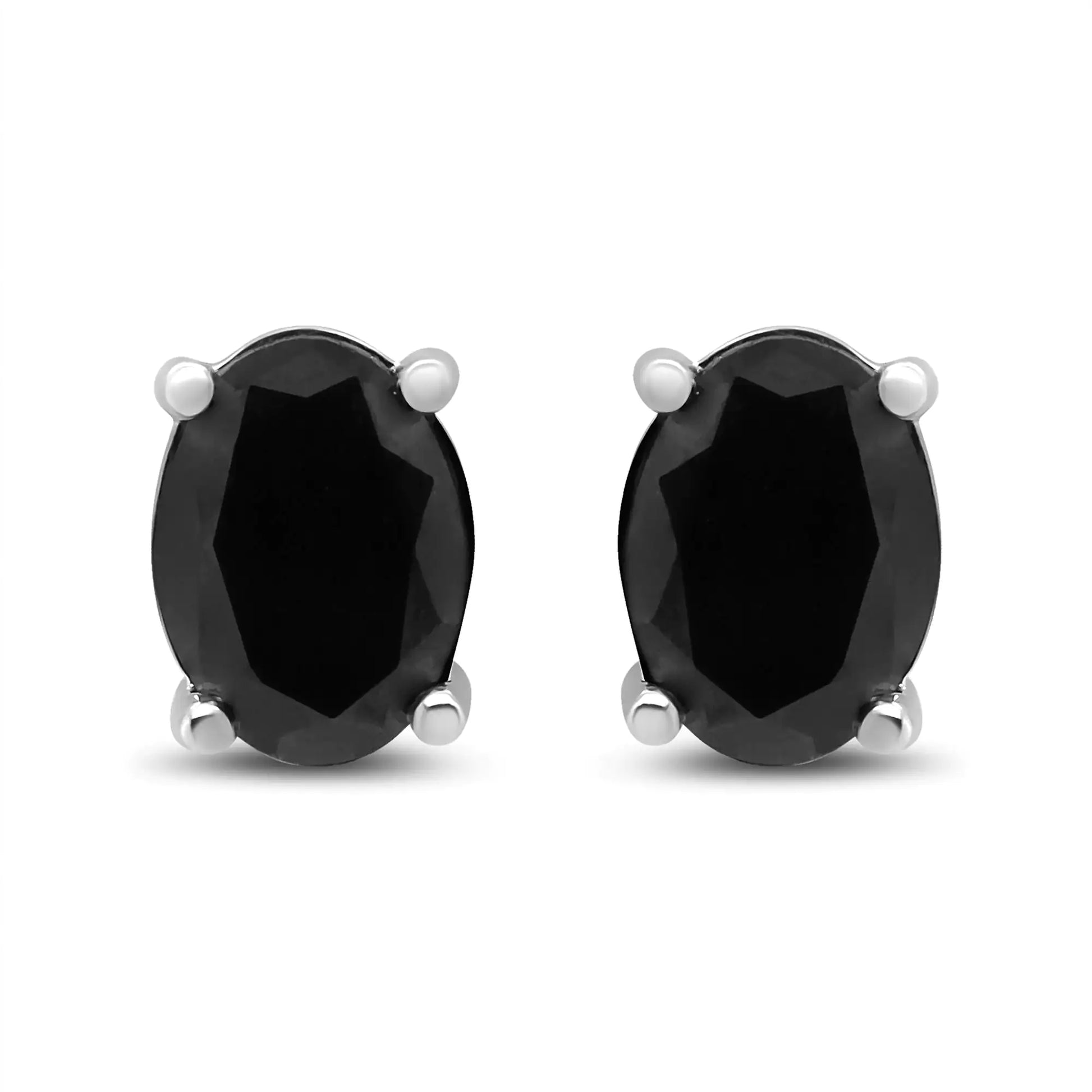 .925 Sterling Silver Prong Set Treated Black Oval Diamond Stud Earring (Black Color, I2-I3 Clarity)