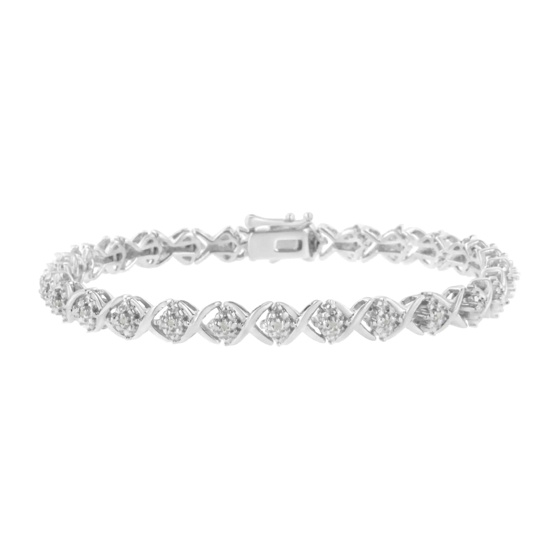 .925 Sterling Silver Round-Cut Diamond Accent Floral Cluster and "X" Link Bracelet (I-J Color, I3 Clarity) - 7.25"