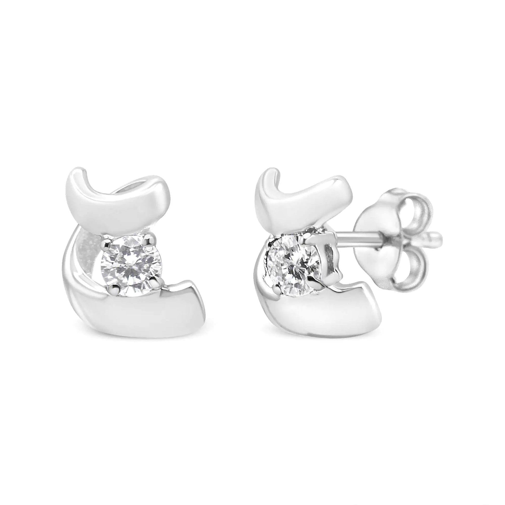 .925 Sterling Silver Round Cut Diamond Fashion Earrings (0.10 cttw, I-J Color, I2-I3 Clarity)
