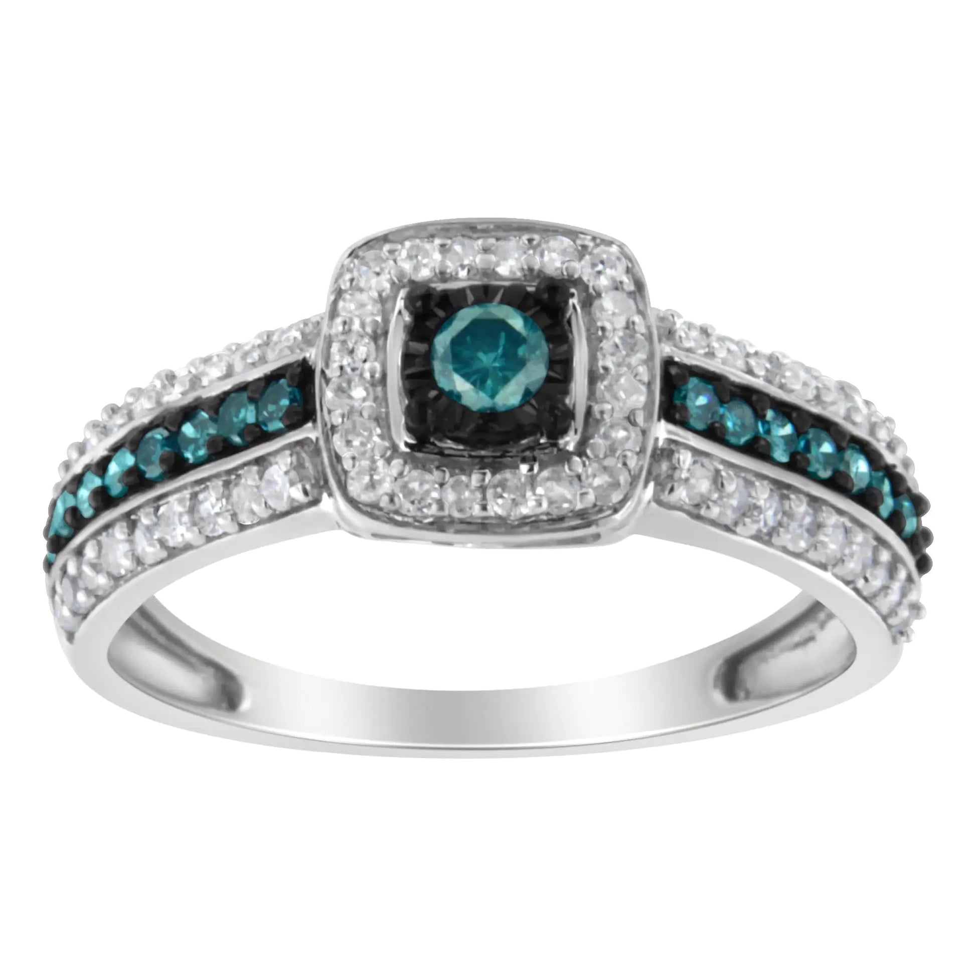 .925 Sterling Silver Treated Blue Miracle-Set Diamond Engagement Ring (1/2 Cttw, J-K Color, I1-I2 Clarity)