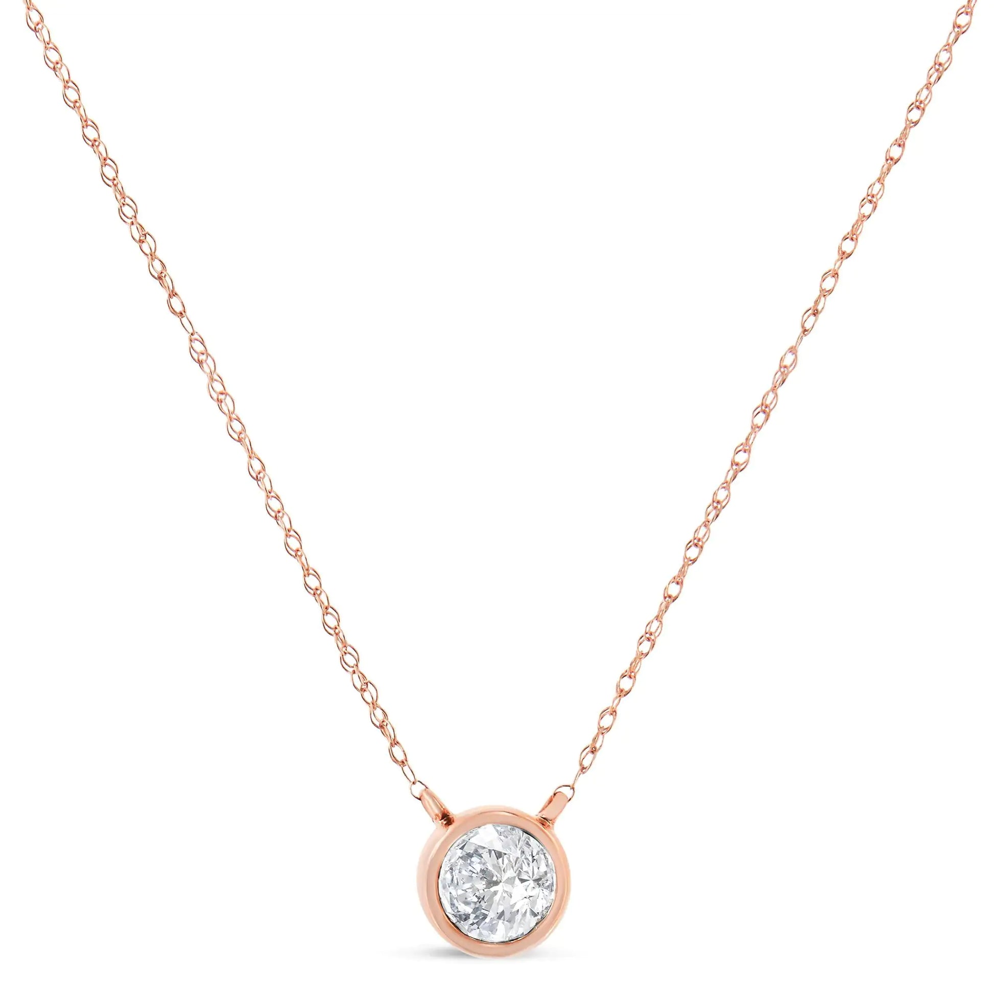 AGS Certified 10K Rose Gold 1/5 Cttw Bezel Set Round Diamond Solitaire 16-18" Adjustable Pendant Necklace (H-I Color, VS1-VS2 Clarity)