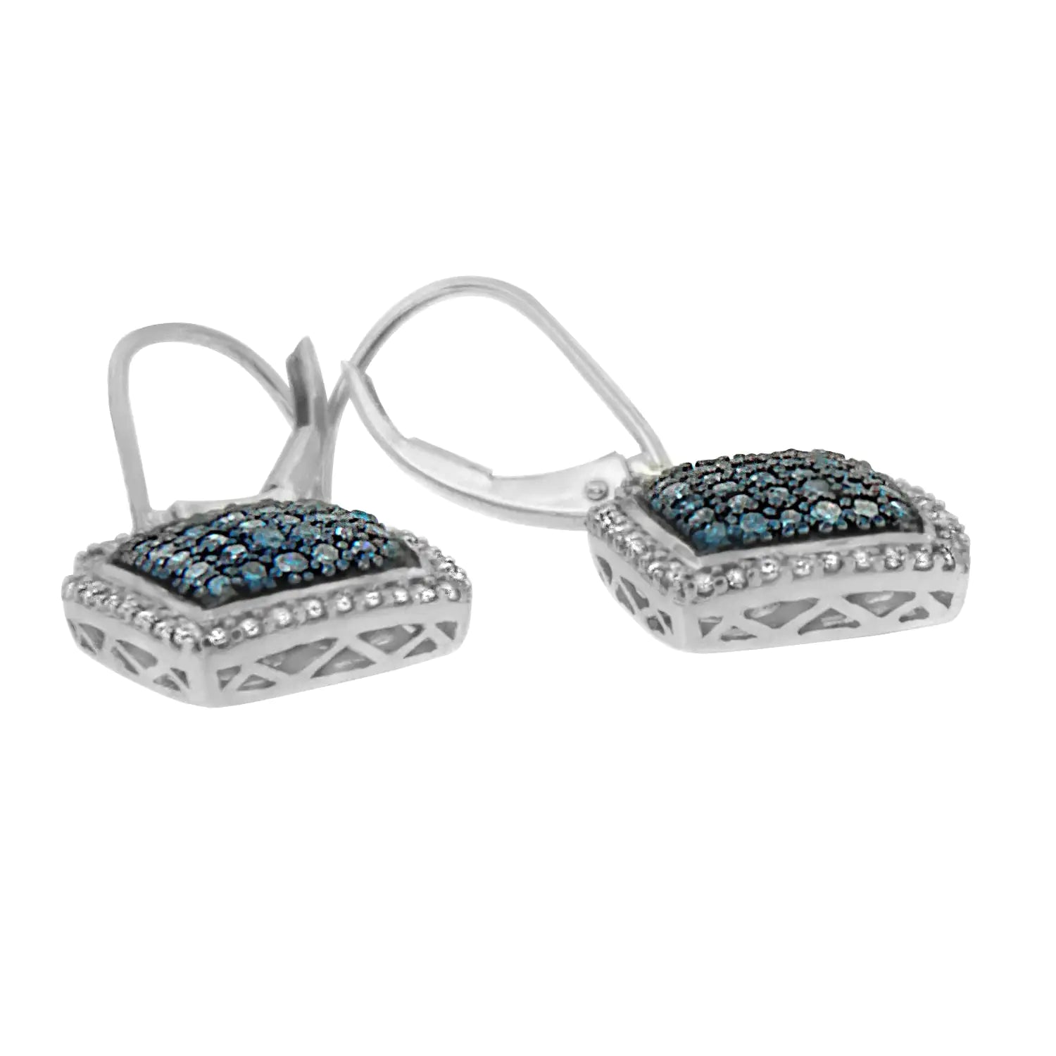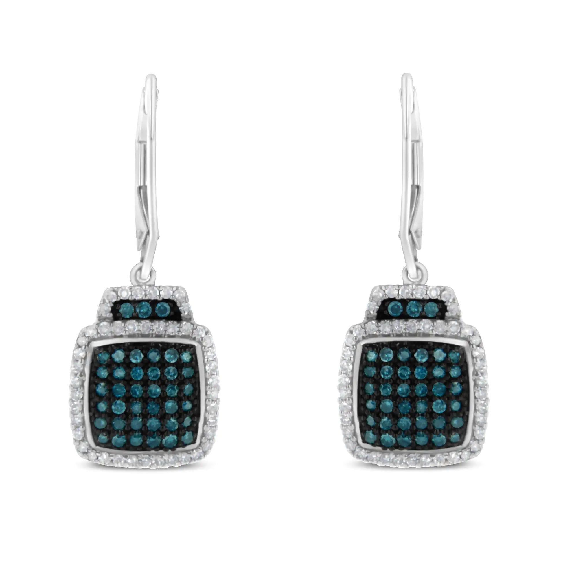 Elegant and timeless, these gorgeous sterling silver dangle earrings feature 0.75 carat total weight of round, brilliant-cut white diamonds and heat-treated fancy blue diamonds, with a total of 158 stones in all. 🌟