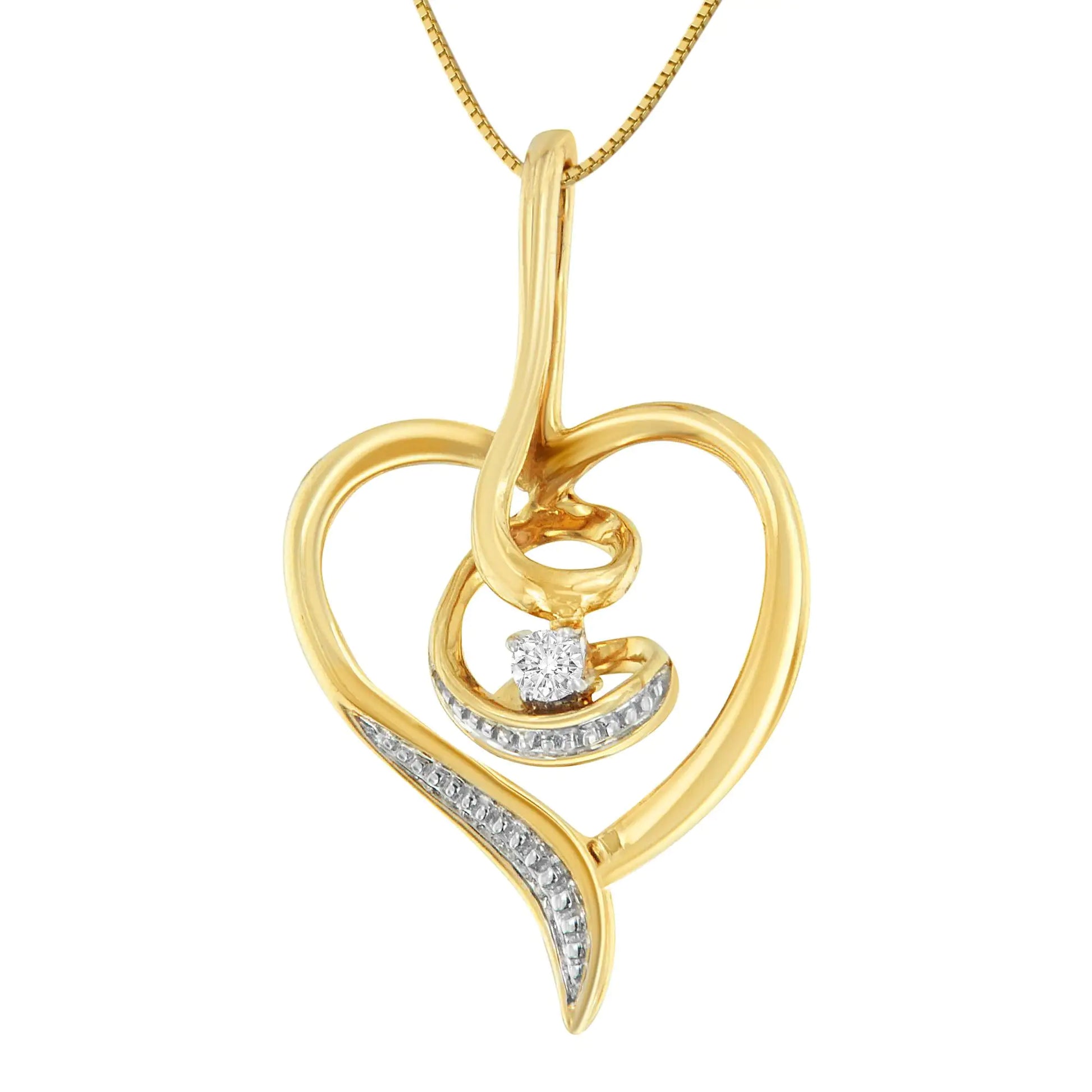 Espira 10K Yellow Gold .03 Cttw Diamond-Accented Round-Cut Diamond Swirl Open Heart 18" Pendant Necklace (I-J Color, I2-I3 Clarity)