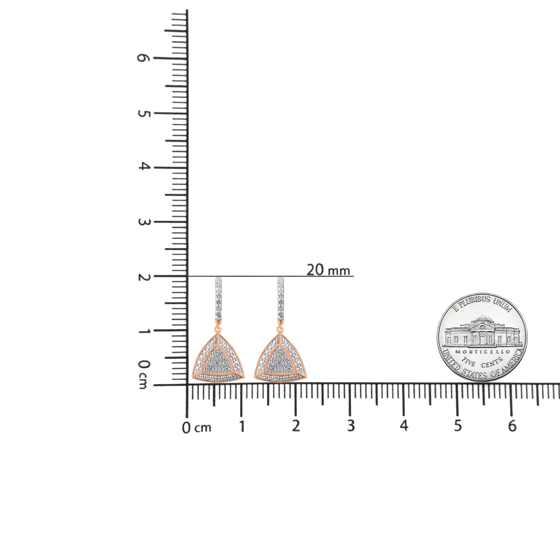 Fashioned in a unique triangle shape 🔺, the earrings are encrusted with shimmering round cut diamonds 💍, all arranged in a prong setting ✨ to add even more charm and brilliance.