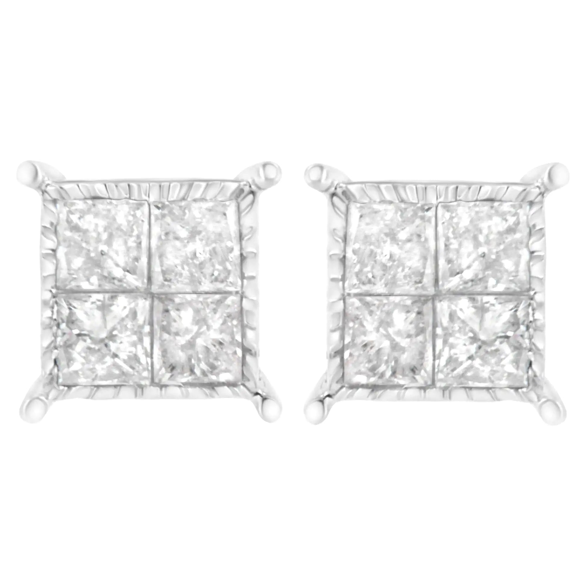 Sterling Silver Princess-Cut Diamond Stud Earrings 💎🥈