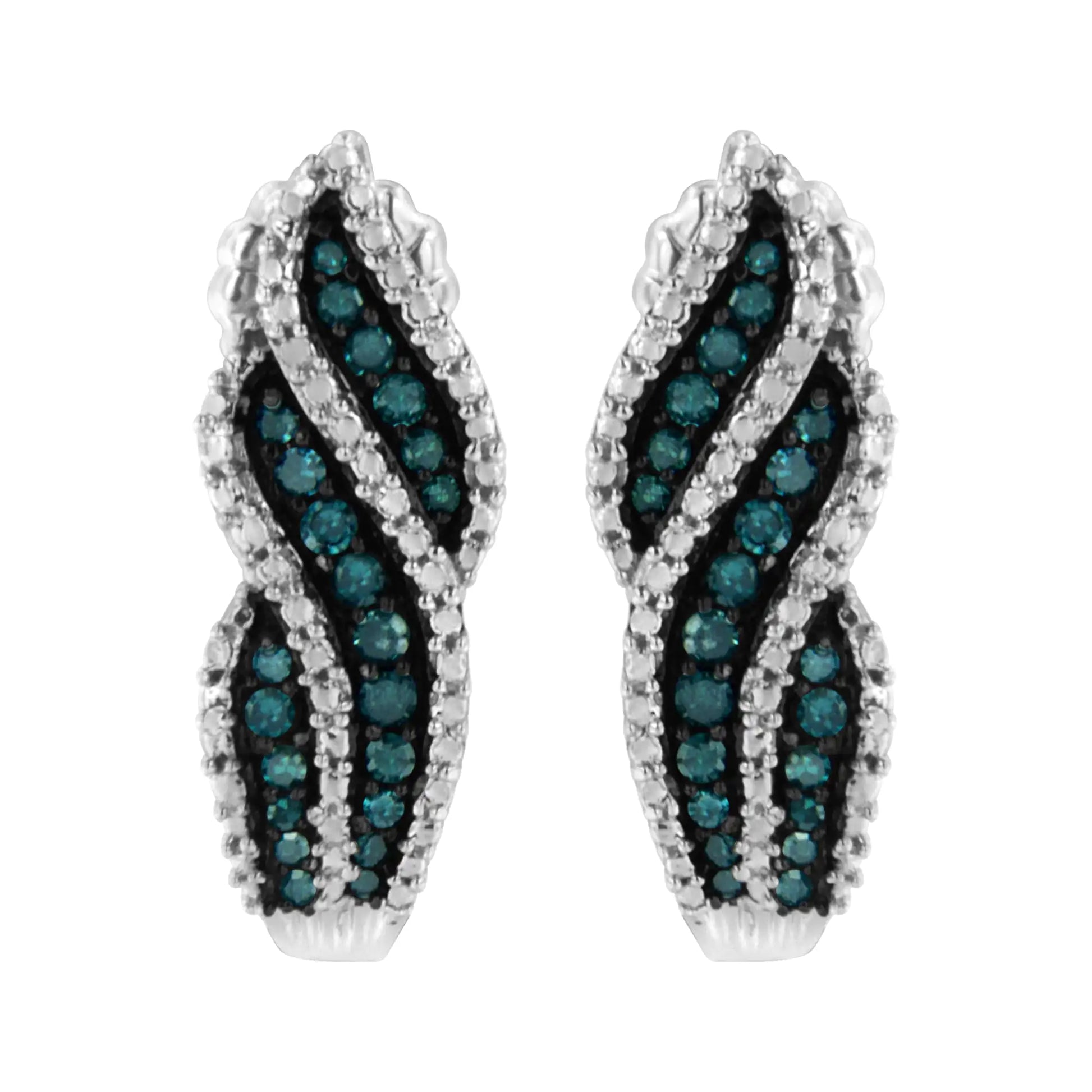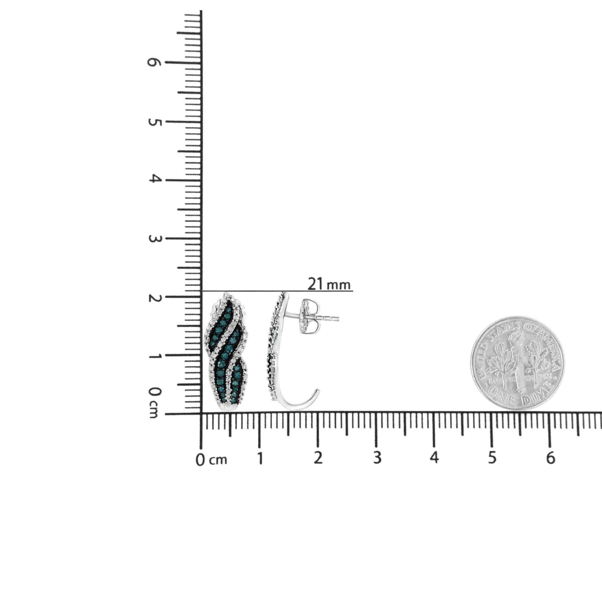 Dazzle all with these stunningly designed sterling silver diamond earrings 🥈. This gorgeous pair of dangling stud earrings 💖 is embellished with .50 carats ⚖️ of round-cut, treated blue diamonds 💙 in a prong setting 🔲.