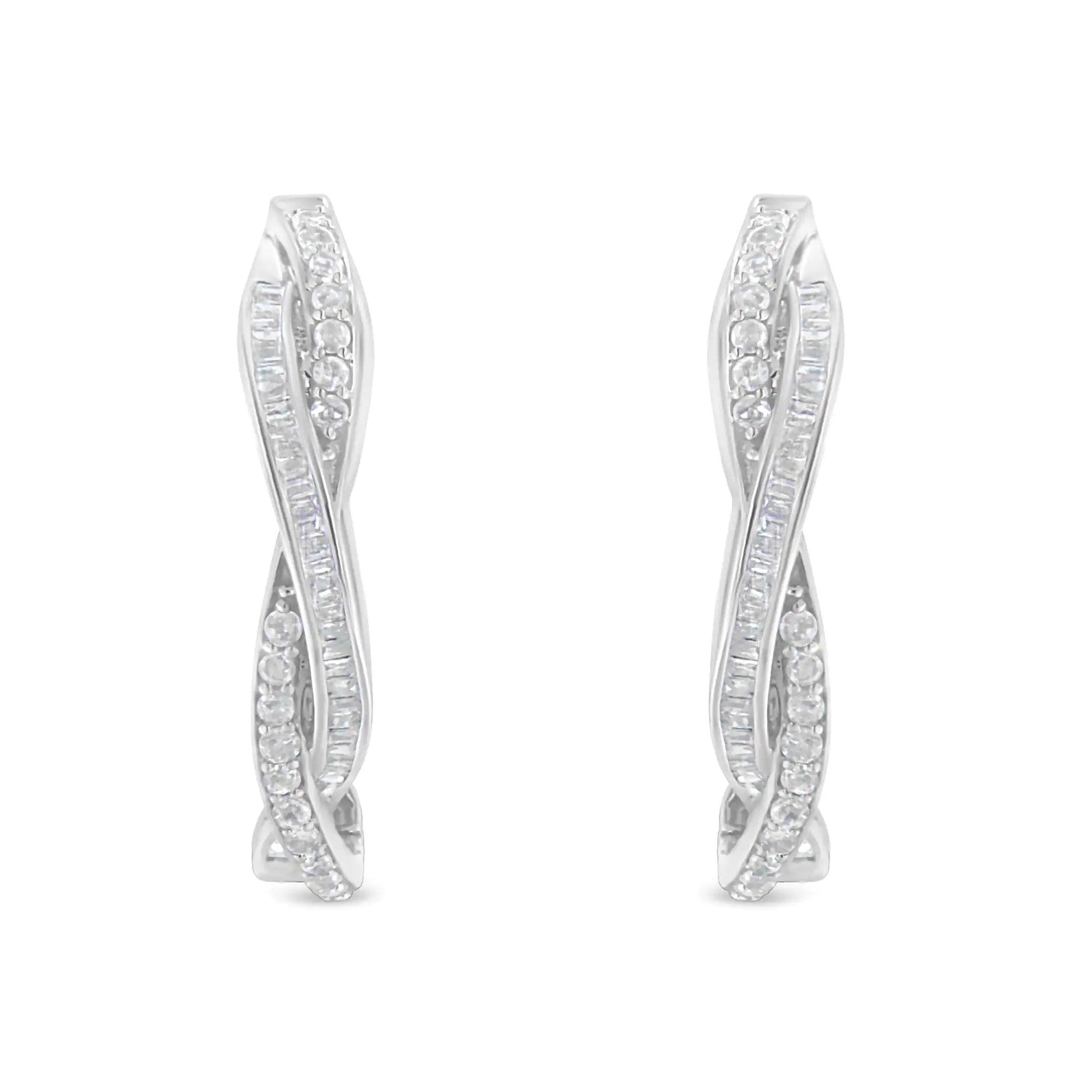 Add some much-needed glamour ✨ to your outfit with these beautifully unique diamond hoop earrings 💎. Created in a modern design, this piece is made with the finest 0.925 sterling silver 🥈 and is embellished with 36 round-cut diamonds 💎 in a pavé setting 🔲, and 64 baguette-cut diamonds 💎 in a channel setting 🔲.