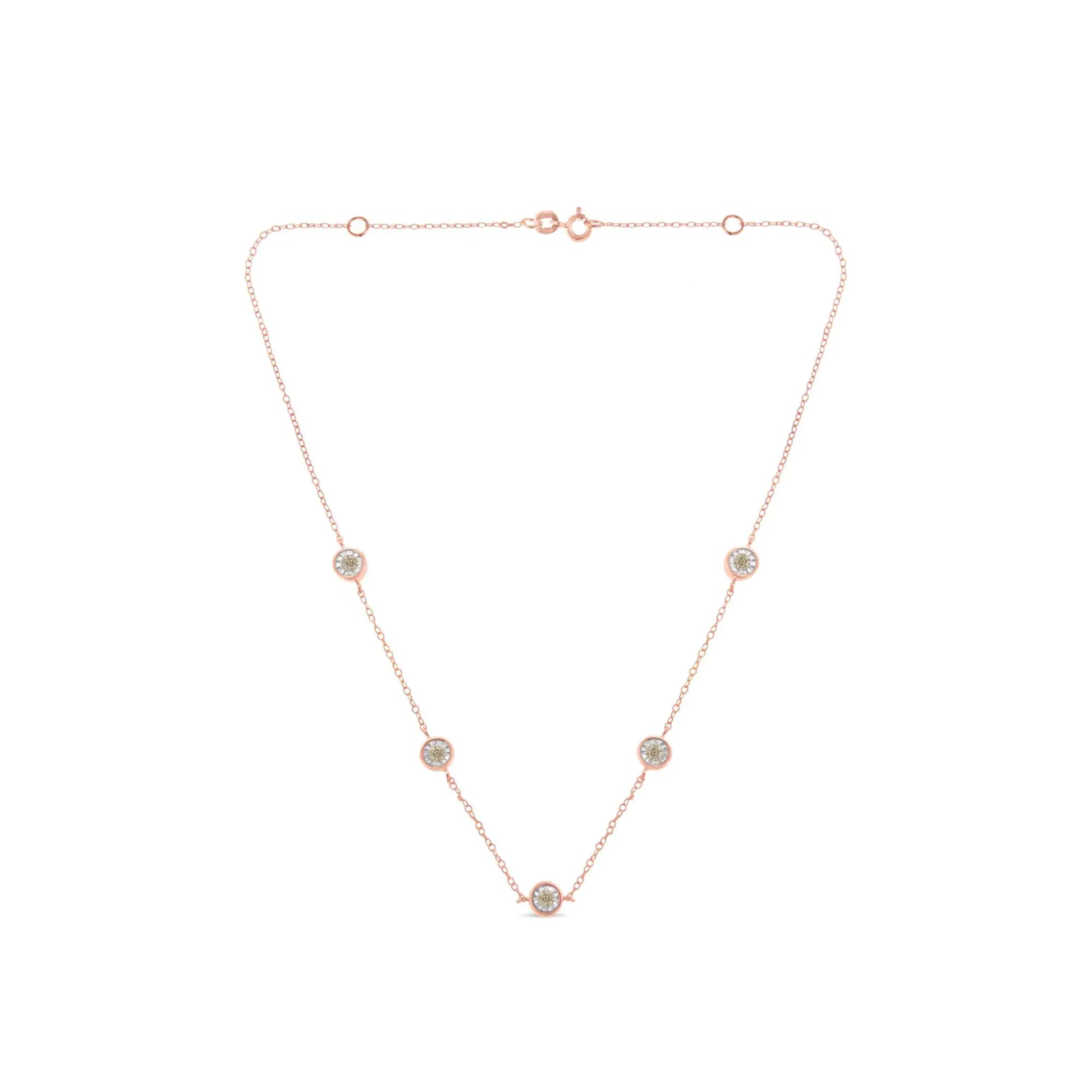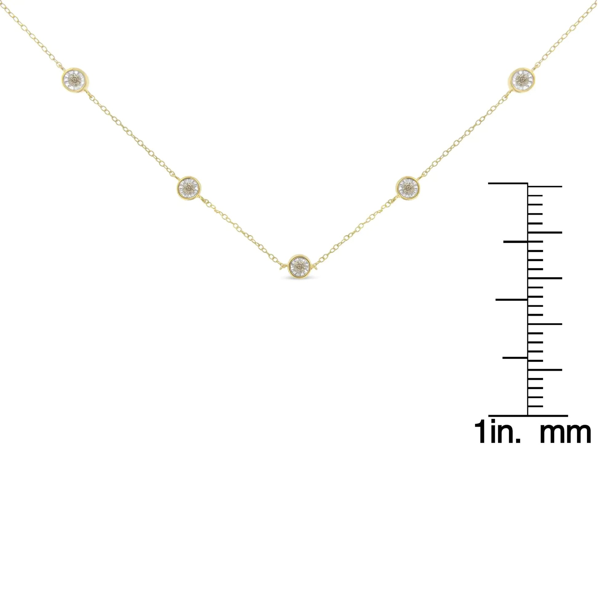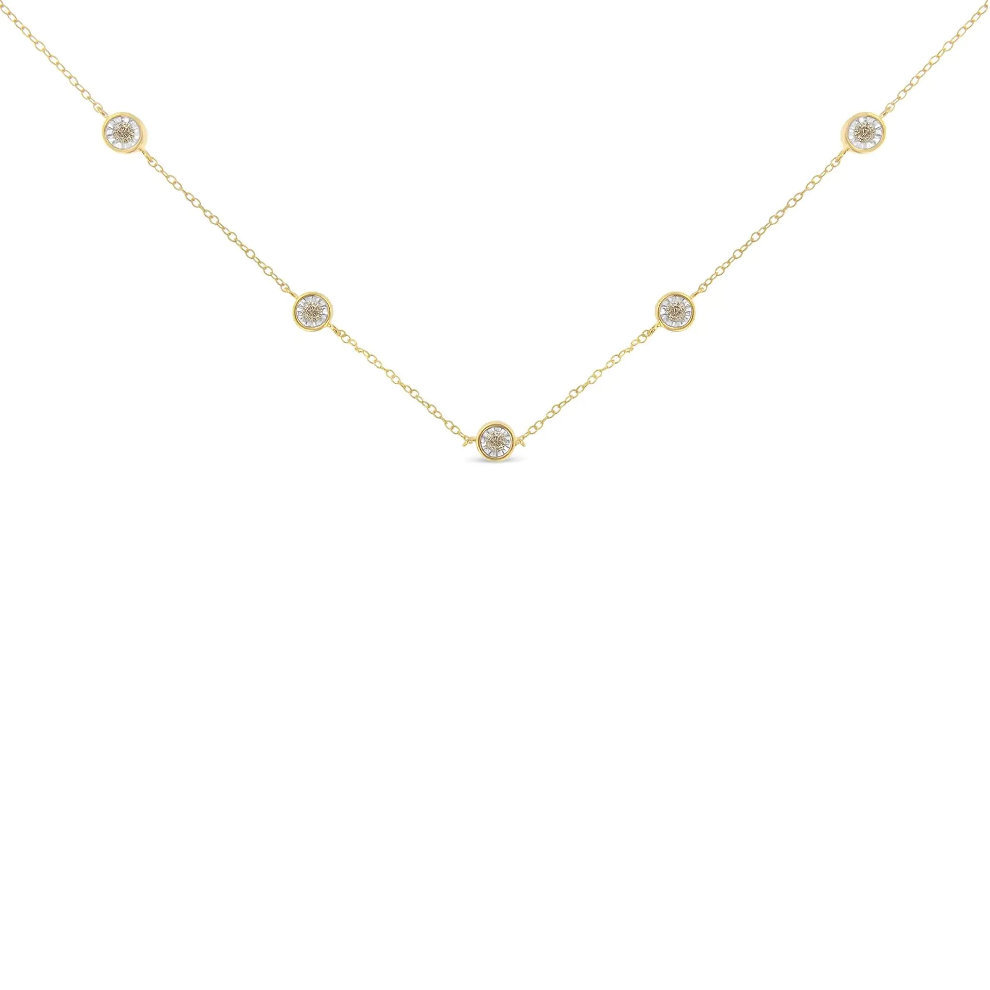 This station necklace 💖 features five diamonds 💎 miracle set 🔲 along a sterling silver 🥈 yellow and white colored chain 🌈.