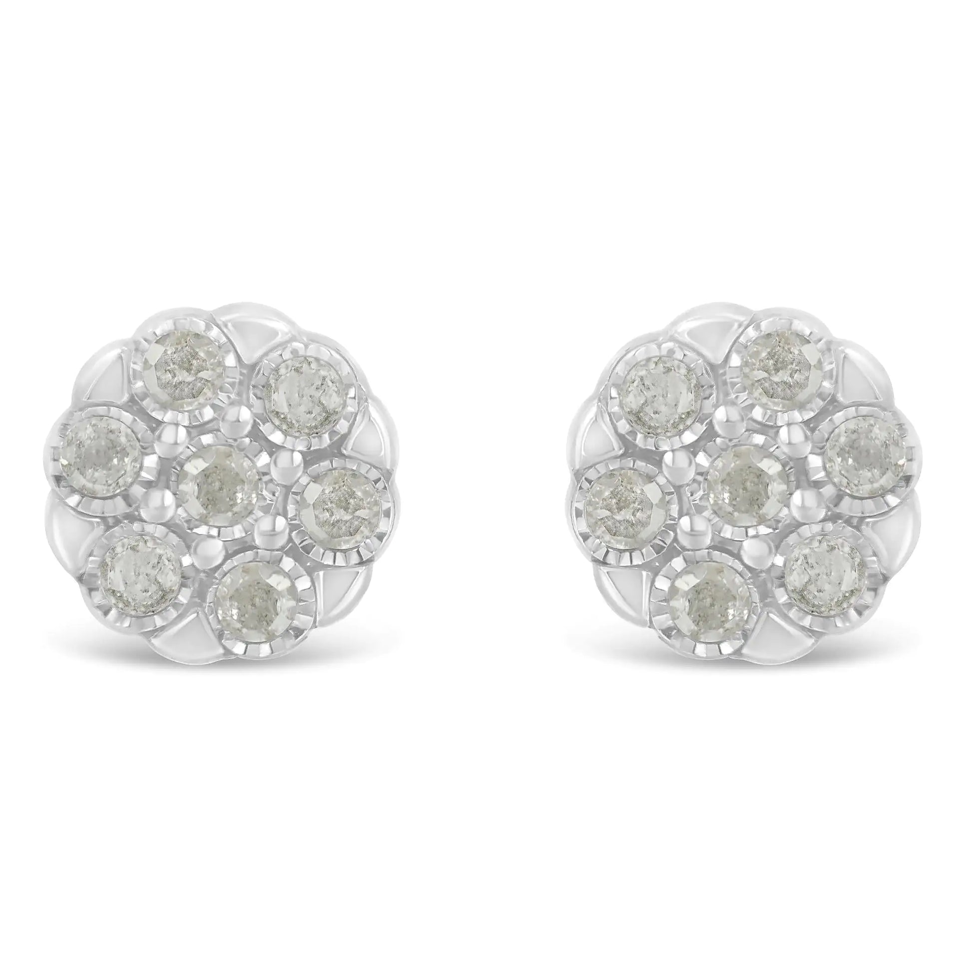 Sterling Silver Rose-Cut Diamond Floral Cluster Stud Earring (0.25 cttw, I-J Color, I2-I3 Clarity)