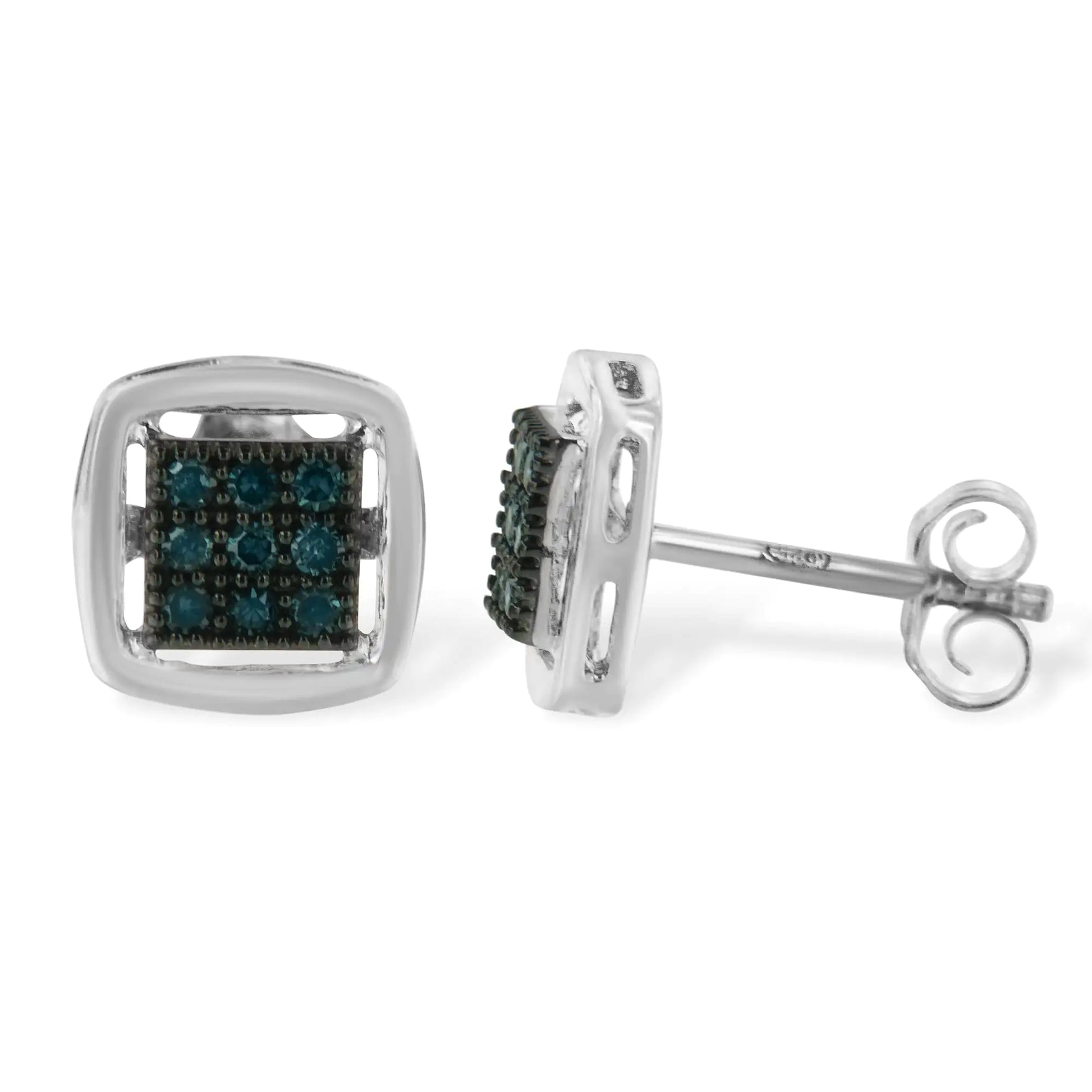 Sterling Silver Rose Cut Treated Blue Diamond Square Stud Earring (0.25 cttw, Blue Color, I2-I3 Clarity)