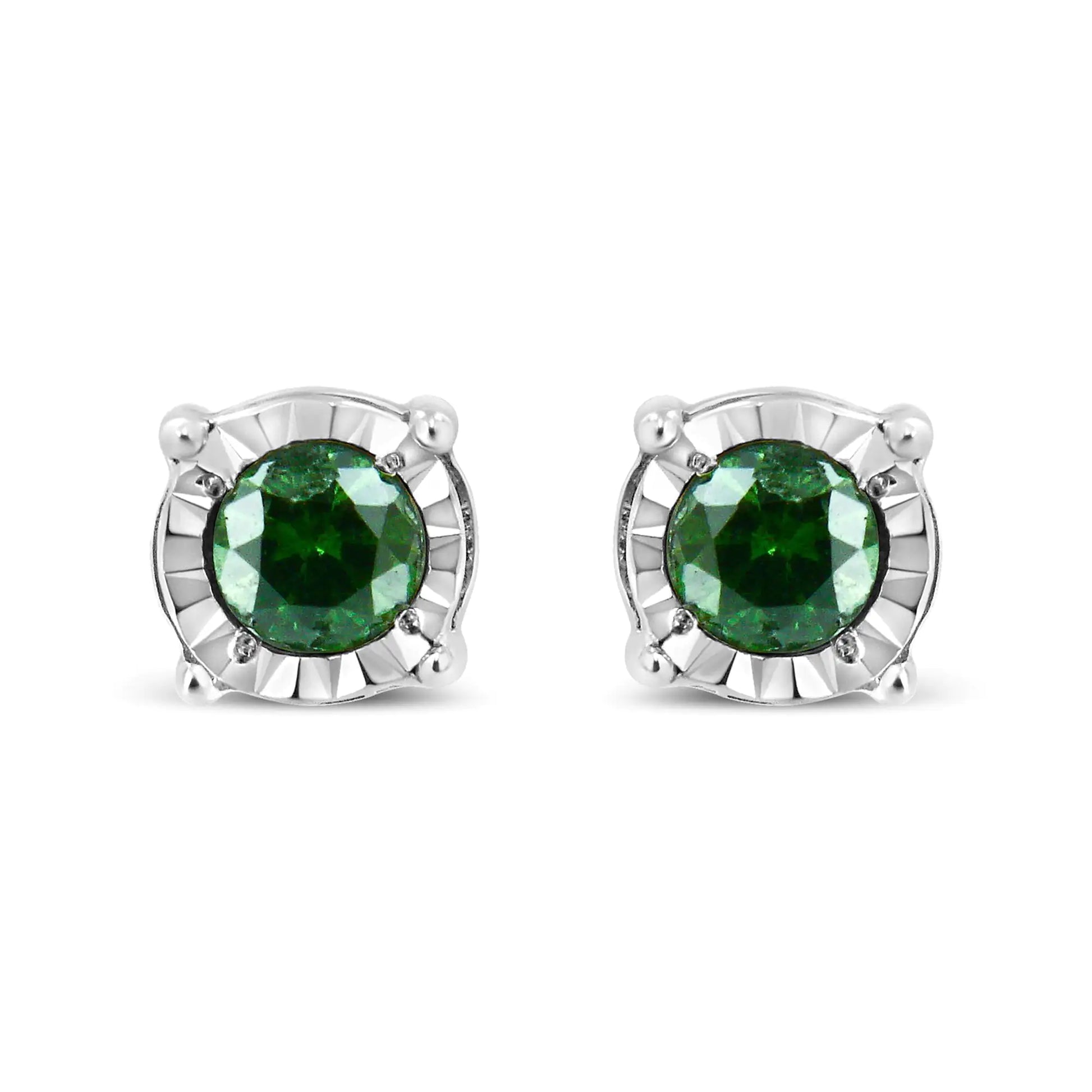 Sterling Silver Rose Cut Treated Green Diamond Solitaire Stud Earrings (0.25 cttw, Green Color, I2-I3 Clarity)